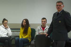 01.12.2017 r. uczniowie klas trzecich (III d i III c) uczestniczyli w spotkaniu prowadzonym przez przedstawicieli WKU z Sieradza. Podczas zajęć z kapitanem Zbigniewem Suszkiem oraz p. Kamilą Gałązką poznali specyfikę edukacji na uczelniach wojskowych oraz zdobyli wiedzę na temat wojska.