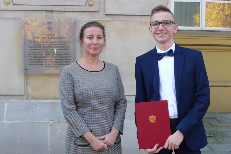 16 października 2017 r. Sebastian Pęcherz, uczeń II LO w Wieluniu, odebrał w Kancelarii Rady Ministrów w Warszawie stypendium Prezesa Rady Ministrów na rok szkolny 2017/2018.